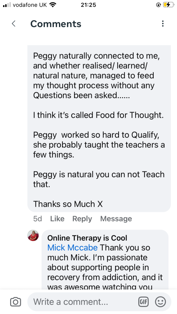 Message Me on Facebook or use our contact form to request a unique reference number. This will protect your personal data making it non-identifiable, when you complete the Counselling Assessment Form, so that I can learn a bit more about you before our call. (Please note, this isn’t a crisis support call. If you need immediate help, call NHS 111, or consider some of these resources.)